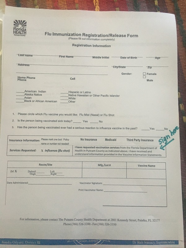 The Florida Department of Health in Putnam County will offer influenza vaccines free of charge to all PCSD students during school hours the week of November 2nd-5th, 2020.