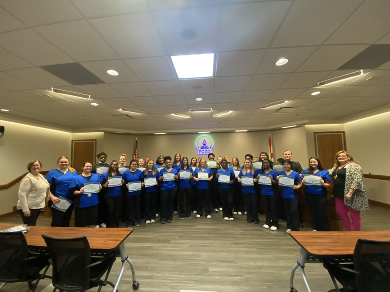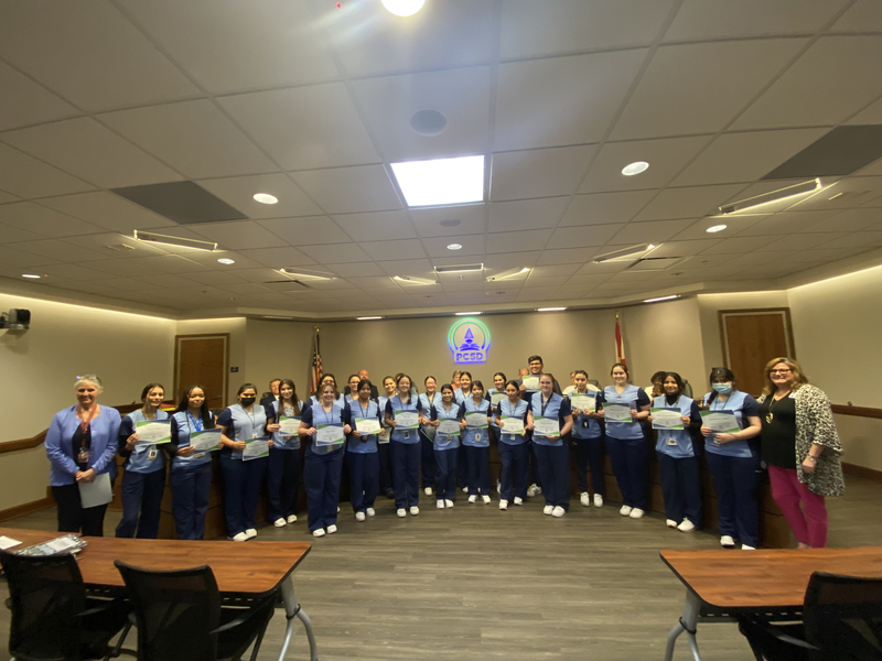 PCSD Health Services partnered with the Allied Health Assisting programs from our high schools to provide health screenings to targeted grade-level students. During the clinical experience students learned the importance of health screenings, received training on how to perform vision, hearing, growth & development and scoliosis screenings, and assisted with providing screenings for eligible students.